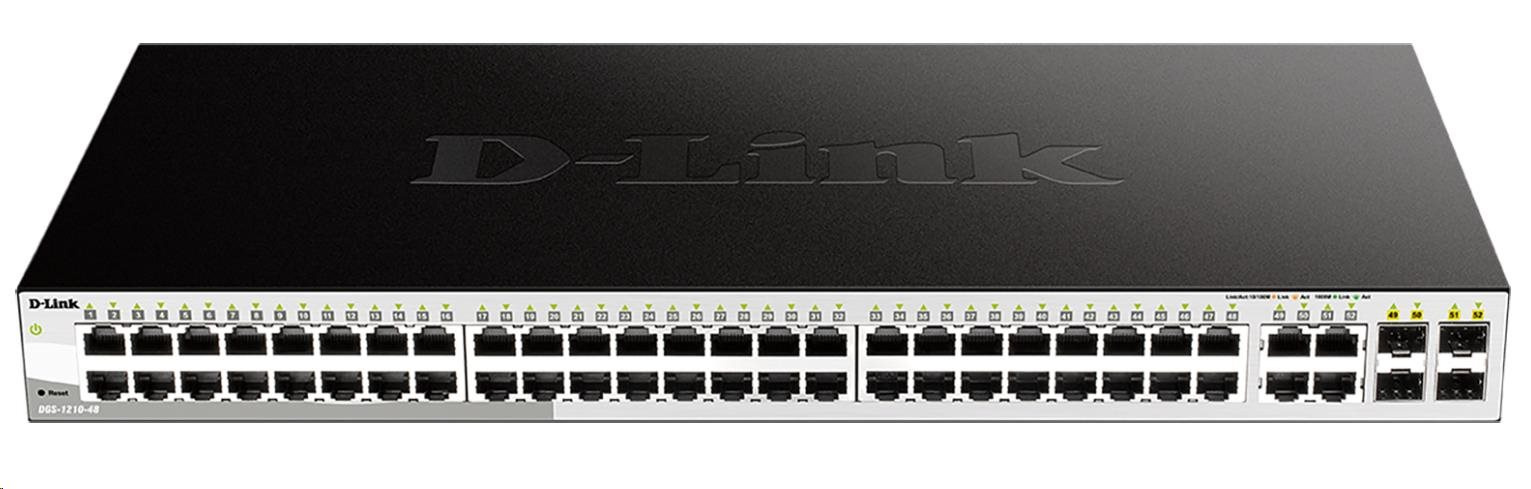 Popis D-Link DGS-1210-48 52-port Gigabit Smart Switch, 48x GbE, 4x RJ45/SFP, fanless