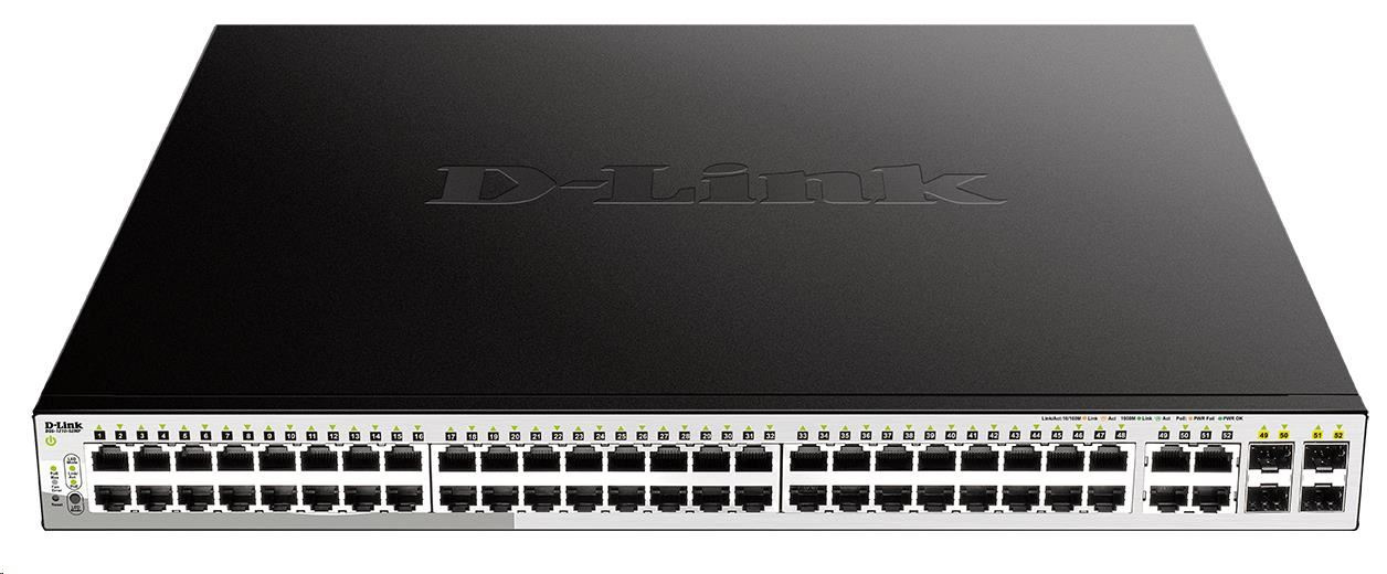 D-Link DGS-1210-52MP 52-Port Gigabit Smart+ PoE Switch, 48x GbE PoE+, 4x RJ45/SFP, PoE 370W