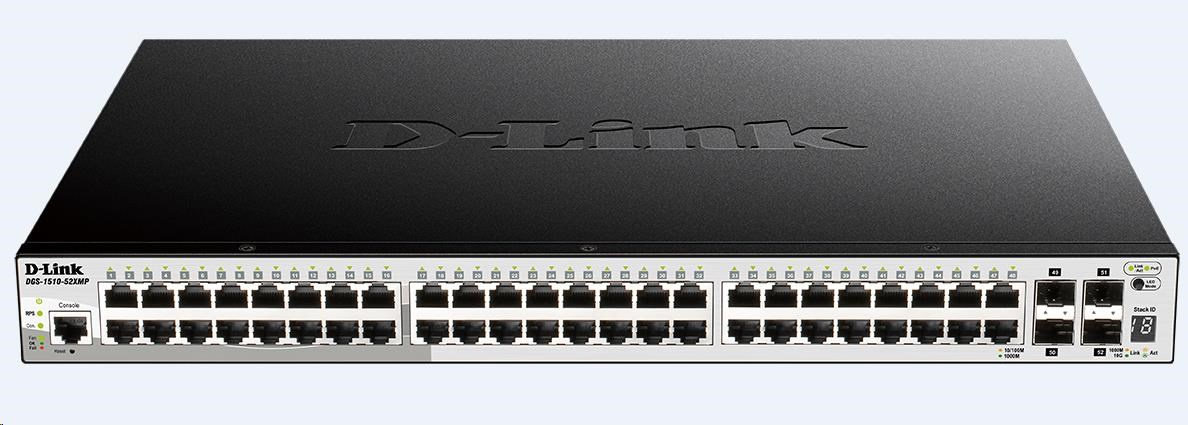 D-Link DGS-1510-52XMP 52-Port Gigabit Stackable PoE Smart Managed Switch including 4 10G SFP+, 370W PoE budget