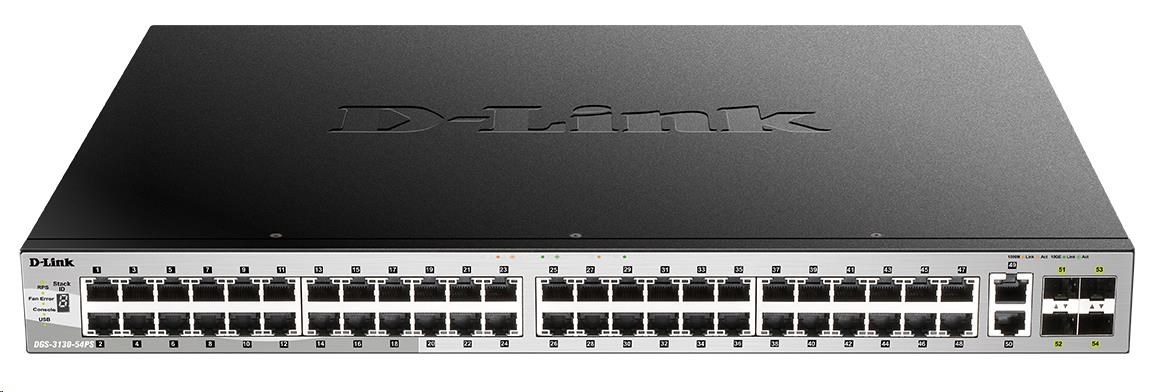 D-Link DGS-3130-54PS/SI L3 Stackable Managed Gigabit PoE Switch, 48x PoE gigabit, 2x 10GBASE-T, 4x SFP+, 370W PoE