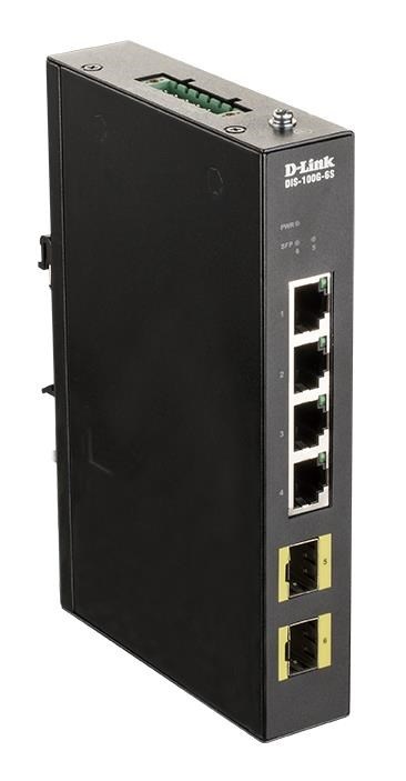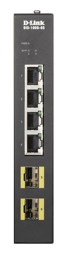 Popis D-Link DIS-100G-6S Průmyslový Gigabit unmanaged switch, 4x GbE, 2x SFP, DIN