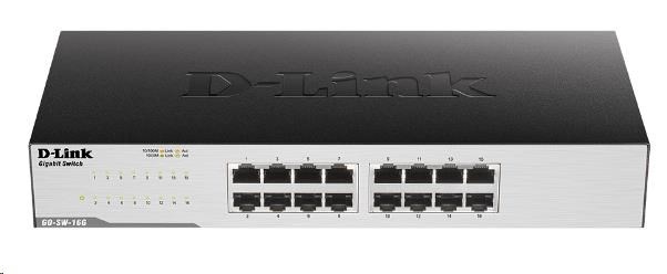 16-Port GIGABIT EASY DESKTOP SWITCH - 16-Port Gigabit Switch - Auto MDI.MDIZ crossover for all ports - Full/half-duplex for Ethernet / Fast Ethernet speeds - Plug-and-play installation - Energy Star Level V qualified - D-Link Green (Automatic port powerdown for unused ports) - Metal housing, black, Desktop and Rackmount (Rubber feet and Rackmount kit included), 1 HE.