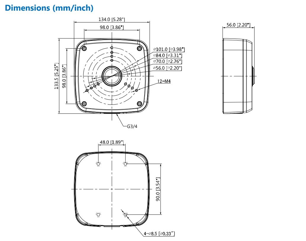 • Rozměry (ŠxVxH): 134,0 mm x 133,5 mm x 56,0 mm