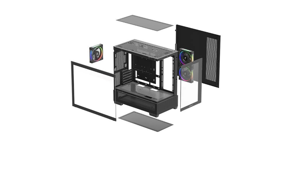 CG380 3F je panoramatická Micro-ATX skříň, která kombinuje design a funkčnost v kompaktním provedení. Se třemi předinstalovanými PWM ARGB ventilátory je skvělou volbou pro vytvoření efektní sestavy s spolehlivým prouděním vzduchu.