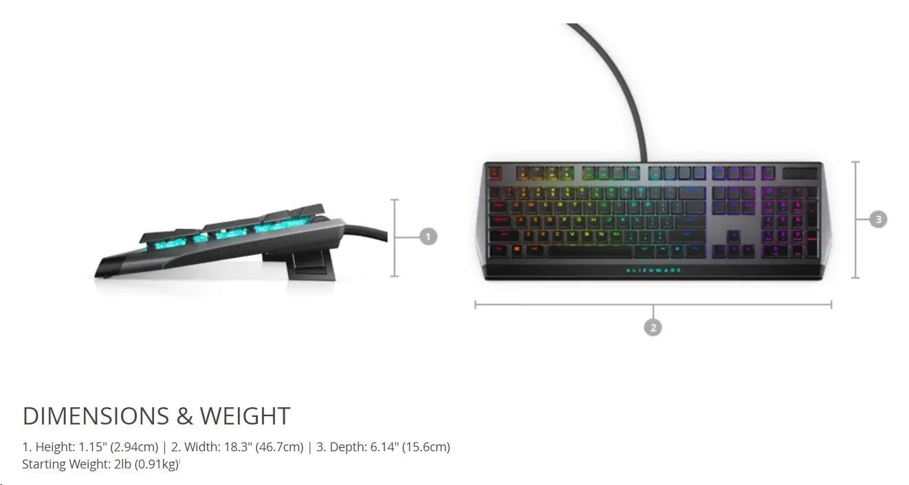 Popis DELL Alienware 510K Low-profile RGB Mechanical Gaming Keyboard - AW510K (Dark Side of the Moon)