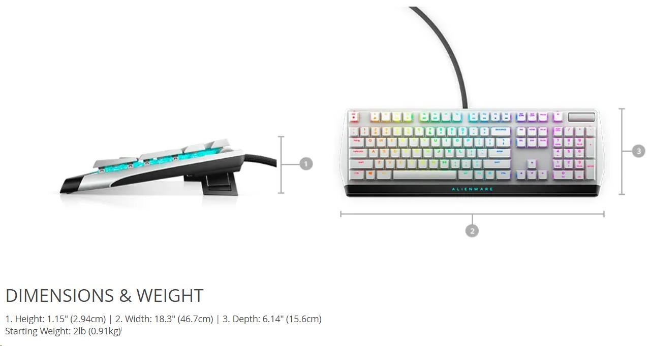 Popis DELL Alienware 510K Low-profile RGB Mechanical Gaming Keyboard - AW510K (Lunar Light)