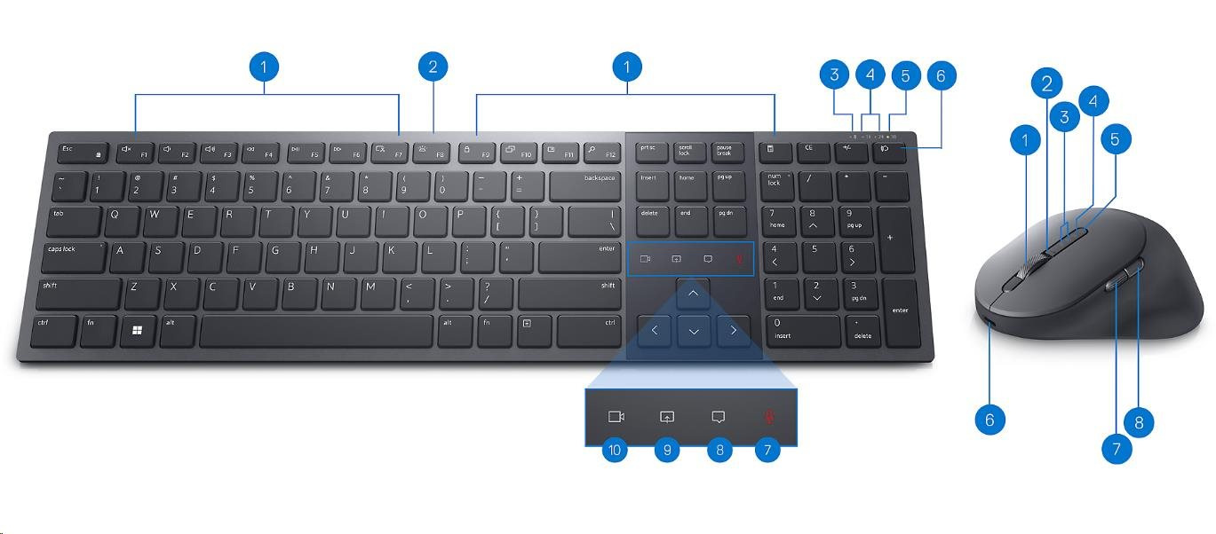 Popis DELL KLÁVESNICA Premier Collaboration Keyboard and Mouse - KM900 - US International (QWERTY)