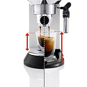 Stylový a kompaktní kávovar navržený tak, aby doplnil vaši kuchyňskou pracovní desku. Přístroj na přípravu espressa se lesklým tělem z nerezové oceli a matným bílým provedením Dedica dodá každé kuchyni nádech autentického italského designu. Vychutnejte si bohaté, jemné espresso a použijte nastavitelný „Cappuccino systém“ k napaření mléka nebo vylepšení kávy krémovou mléčnou pěnou.