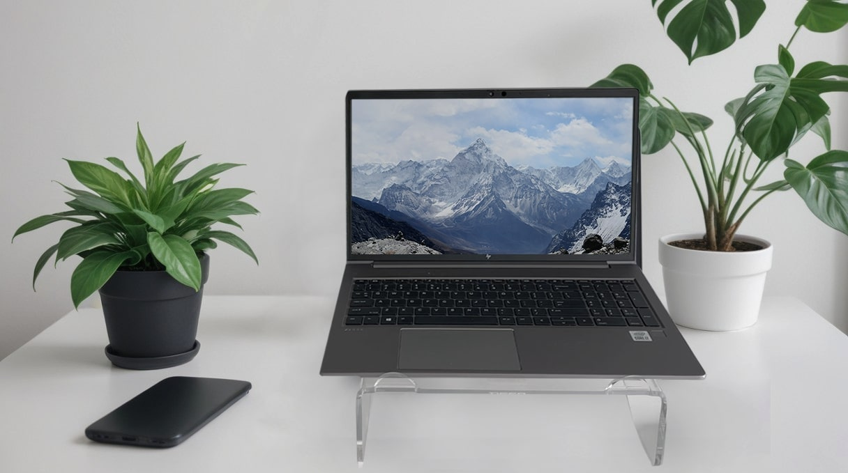 Stojan na notebook vyrobený z vysoce kvalitního průhledného akrylu v moderním minimalistickém designu. Jeho elegantní a jednoduchý design zajišťuje stabilitu bez rušivých prvků. ? Vysoce kvalitní 6 mm čirý akryl ? Platforma se sklonem 5 ° pro optimální komfort sledování ? Úložný prostor (max. 290 mm široký) pod stojanem, ideální pro dokumenty nebo klávesnici ? Robustní konstrukce s nosností až 15 kg ? Pogumované nožky pro stabilitu a ochranu pracovní plochy S DESQ stojanem na notebook nastavíte svůj displej do ideální výšky, což podporuje zdravé ergonomické držení těla a pomáhá předcházet bolestem zad, krku a očí..