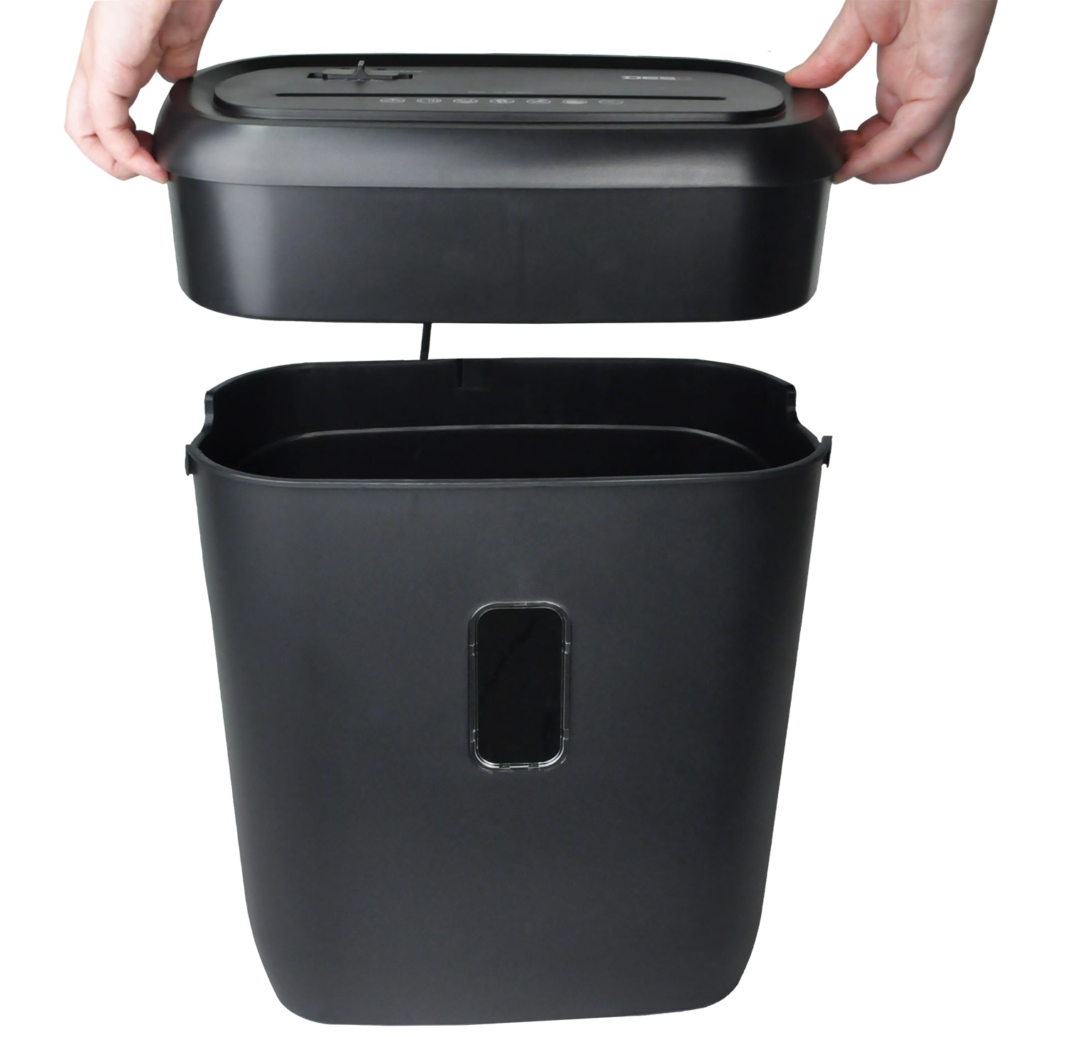 Výkonný křížový skartovač papíru s prostornou nádobou, ideální pro domácí kancelář a malé kanceláře.Více