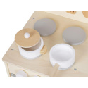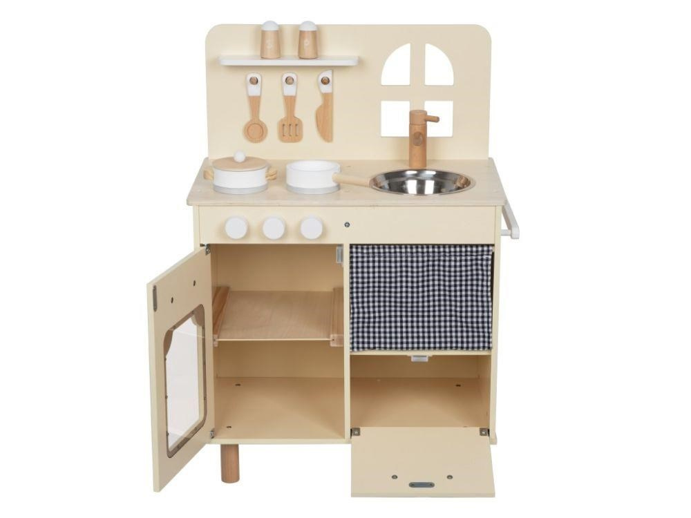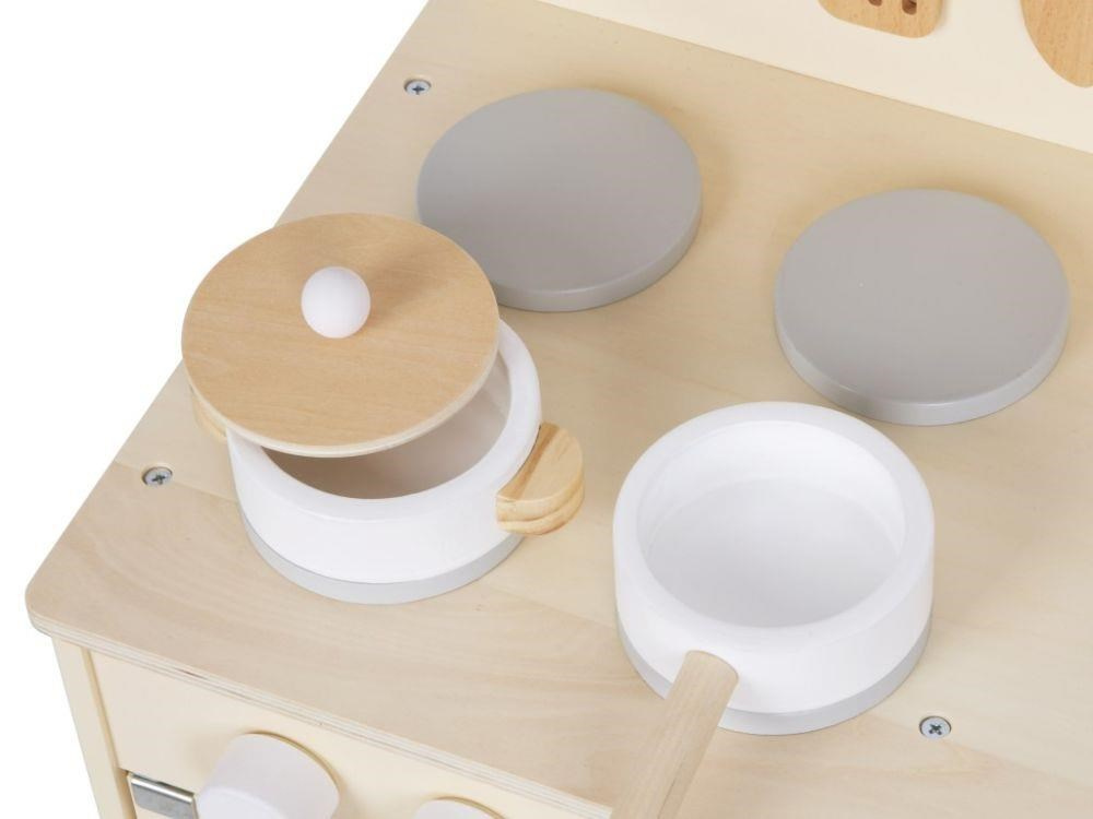 Dětská kuchyňka v jemných pastelových barvách, se spotřebiči, příslušenstvím a okýnkem nadchne každého malého kuchtíka a hospodyňku. V dětské kuchyňce si děti mohou vyzkoušet vaření, pečení, umývání nádobí, chystání pokrmů bezpečným dětským způsobem. Při hře v dětské dřevěné kuchyňce děti zdokonalí své dovednosti a ještě si užijí spoustu zábavy..