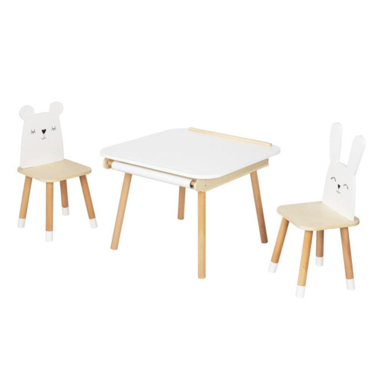 Dětský rostoucí set nábytku, rostoucí stůl s rostoucími židlemi, je krásným doplňkem do dětského pokoje, který poroste s vašim dítkem. Celý set dětského nábytku může povyrůst o 5 nebo 10 cm. Pod deskou stolu se ukrývá praktický úložný prostor, součástí je držák na roli papíru i magnetický držák přímo na desce stolu. Díky neutrálním barvám je dětský stolek s židlemi vhodný pro holčičky i chlapce, do každého interiéru..