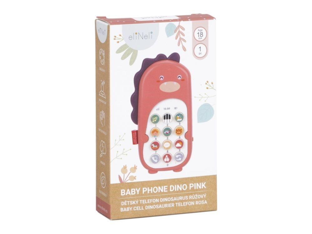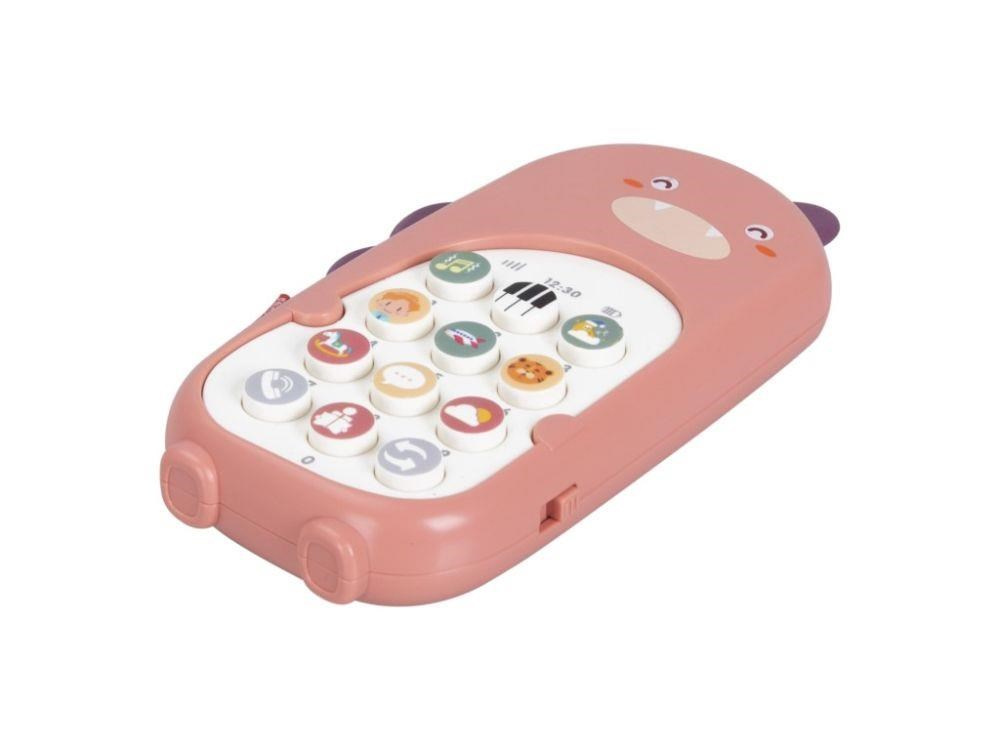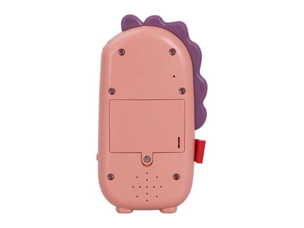Dětský mobilní telefon v růžové barvě je parádní hračkou pro holčičky. Dětský telefon v podobě růžového dinosaura přinese dětem zábavu i vzdělání. 12 interaktivních tlačítek s různými funkcemi dětem zahraje písničky, různé zvuky a naučí je anglická slovíčka..