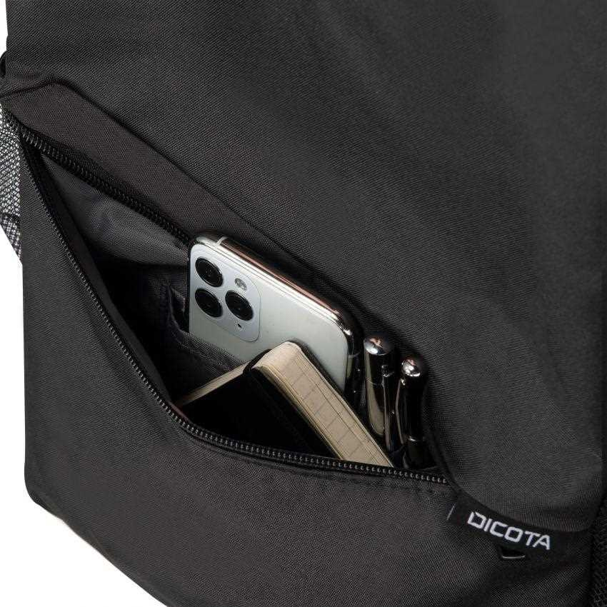 Upevňovací popruh zajišťuje bezpečné uchycení bez vyklouznutí. Hlavní přihrádka o objemu 15 litrů nabízí další prostor pro dokumenty a osobní věci. Láhev na vodu a deštník lze uložit do bočních kapes a ušetřit tak místo. Mobilní příslušenství, jako jsou chytré telefony, vizitky, pera atd. jsou vždy po ruce v přihrádce na zip na přední straně. Pohodlné ramenní popruhy a praktická rukojeť nabízejí příjemný komfort při nošení. Celkově se jedná o funkční řešení pro spolehlivou ochranu při profesionálním i soukromém nošení. DICOTA zdůrazňuje odolnost rodiny ONE prodlouženou pětiletou zárukou.