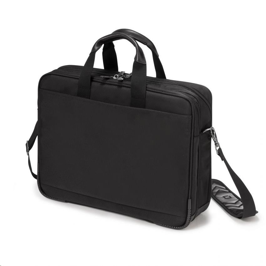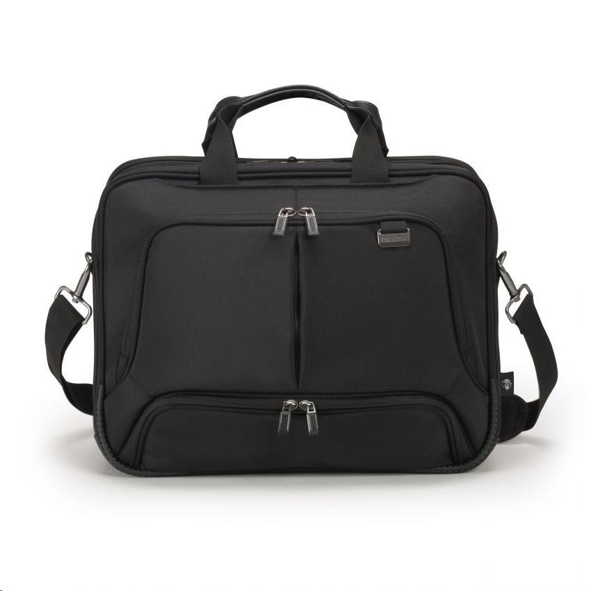 Travel "1st class" with the Eco Top Traveller PRO. The toploader bag reliably accompanies you everywhere and meets the highest standards of quality, functionality and protection: DICOTA's attention to detail makes this bag one of your most reliable business partners! The fitall system separating wall in the notebook compartment lies protectively across your notebook and fits automatically to sizes from 15-17.3". The perforated and thus light EVA foam material in the lockable notebook compartment perfectly protects the edges of your device. The anti slip technology coating ensures perfect grip for your notebook in the compartment. Excellent protection for your tablet up to 12.9" thanks to the EVA-shaped compartment with extra-soft Nylex inner lining. Generous storage space for documents. The front pocket with keychain and insert pockets allows to organise the personal equipment and provides space for additional mobile accessories. Additional pocket for charger and cables. The bag is light and comfortable in your hand thanks to the high-quality genuine leather handles. Trolley strap can also be used as an additional document compartment. Bag bottom is made from waterproof material. The Eco Top Traveller PRO is therefore perfect for you if you are always on the go and want to support the recycling of PET bottles with an eco-friendly case.