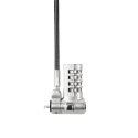 Řešením je cílená prevence. Tento bezpečnostní kabelový zámek s vyměnitelnou hlavou je vhodný pro všechna zařízení vybavená zámkem T-Lock (T-Bar), Wedge nebo Nano slotem proti krádeži. Jednoduché, pohodlné a účinné. Žádný klíč a žádné kompromisy v zabezpečení: jednoduše si nastavte individuální 4místný číselný kód z 10 000 možných kombinací. Notebooky, projektory, monitory a tiskárny lze účinně zabezpečit pomocí třícestných výměnných hlavic.