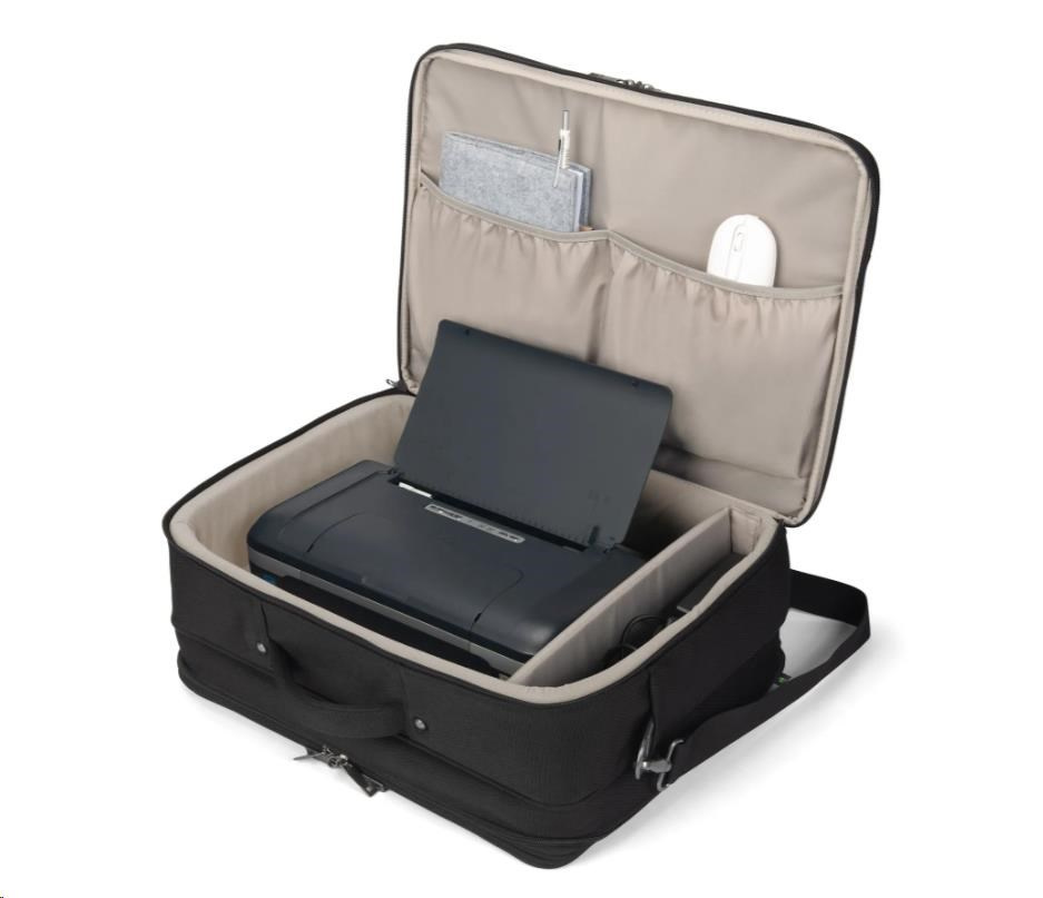 MULTI TWIN FIVE je bezpečný, funkční a ekologický společník pro každodenní pracovní potřeby. Uzamykatelná přihrádka na notebook s pěnou HDF poskytuje robustní ochranu, zatímco vnitřní přihrádka na tablet zajišťuje, že menší zařízení jsou stejně bezpečná. Ve vyhrazené zadní přihrádce jsou uspořádány dokumenty, zatímco přední část nabízí strukturované kapsy na příslušenství. Tato brašna, promyšleně navržená pro pohodlí, je navíc vyrobena ze 41 recyklovaných PET lahví, což spojuje udržitelnost s každodenní praktičností.