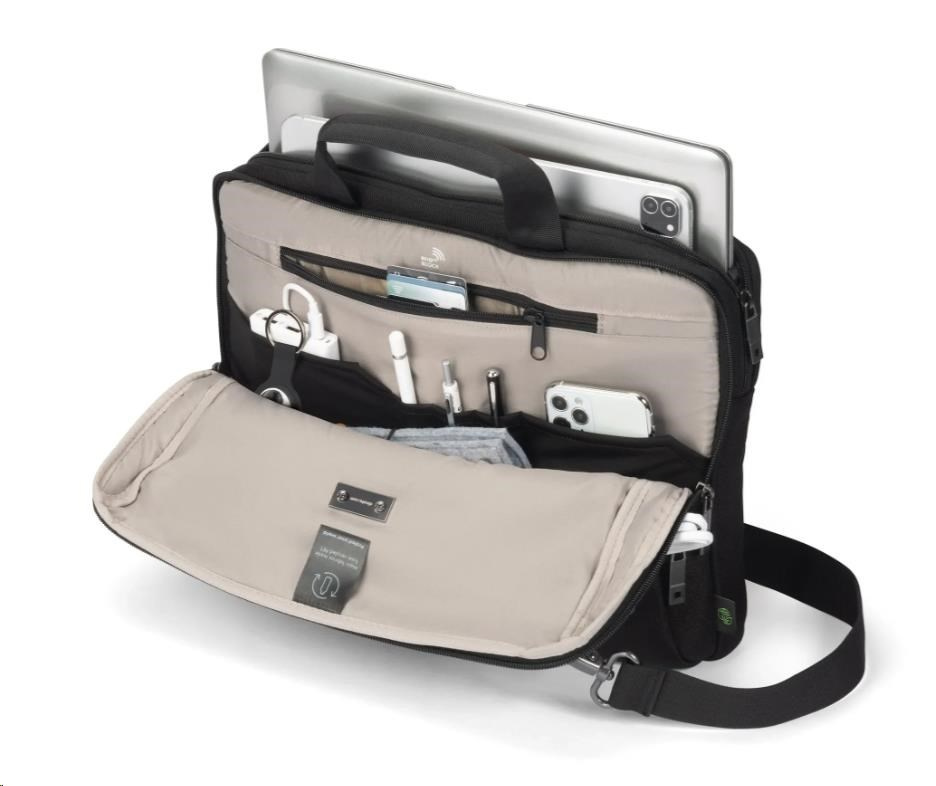 Lehký, bezpečný a navržený pro snadnou mobilitu, Slim Case FIVE chrání vaše nezbytnosti bez toho, aby byl objemný. Uzamykatelná přihrádka na notebook s ochranou DCT Notebook Protection zajišťuje maximální bezpečnost, zatímco integrovaná kapsa bezpečně udrží tablety do velikosti až 12,9". Přední přihrádka se strukturovanými kapsami slouží k uspořádání příslušenství a samostatná zadní přihrádka poskytuje vyhrazený prostor pro dokumenty. Je vyroben z 16,5" recyklovaných PET lahví, takže je udržitelnou a praktickou volbou pro moderní profesionály.