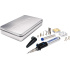 Gravírovací nástroj s variabilním řízením hloubky ke gravírování v materiálech, jako je kov, sklo, dřevo, plasty, keramika atd. Sada rovněž obsahuje šablonu ke snadnému gravírování písmen a číslic.