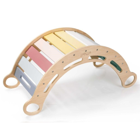 Velká dřevěná montessori houpačka 5v1, s deskami v jemných pastelových barvách, je zábavnou hračkou pro malé i větší děti, kterou využijí při pohybových aktivitách i při hře. Montessori houpačka max umožní dětem příjemně se pohoupat, skvěle poslouží jako prolézačka, skluzavka, skrýš, most, stolička nebo prodejní pultík při hře na obchod. Houpačka přirozeným způsobem rozvíjí motorické dovednosti a je vhodná pro děti již od 1 roku..
