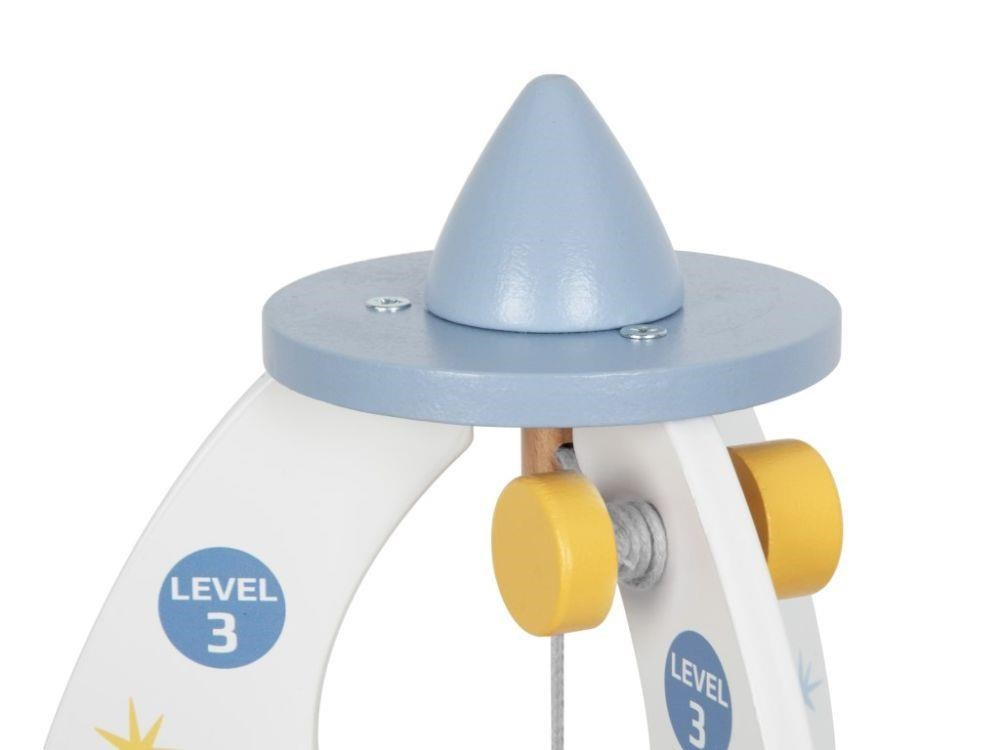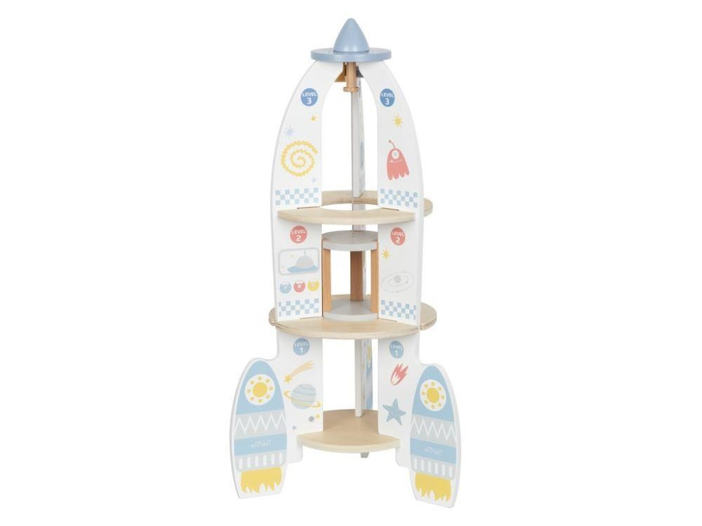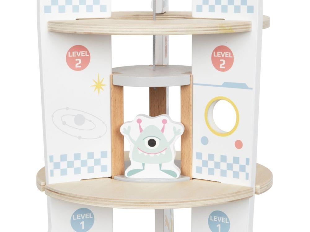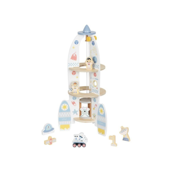 Dřevěná hračka v podobě rakety vynese vaše dítko do vesmíru, alespoň v jeho fantazii. Dřevěná raketa s doplňky a výtahem je zábavnou hračkou, se kterou mohou děti létat po domě či bytě, hrát si s astronauty přímo v raketě, vozit je výtahem stejně jako potřebné vybavení na misi. Hračka dokonale potrénuje motorické dovednosti, rozvíjí dětskou fantazii a kreativitu..