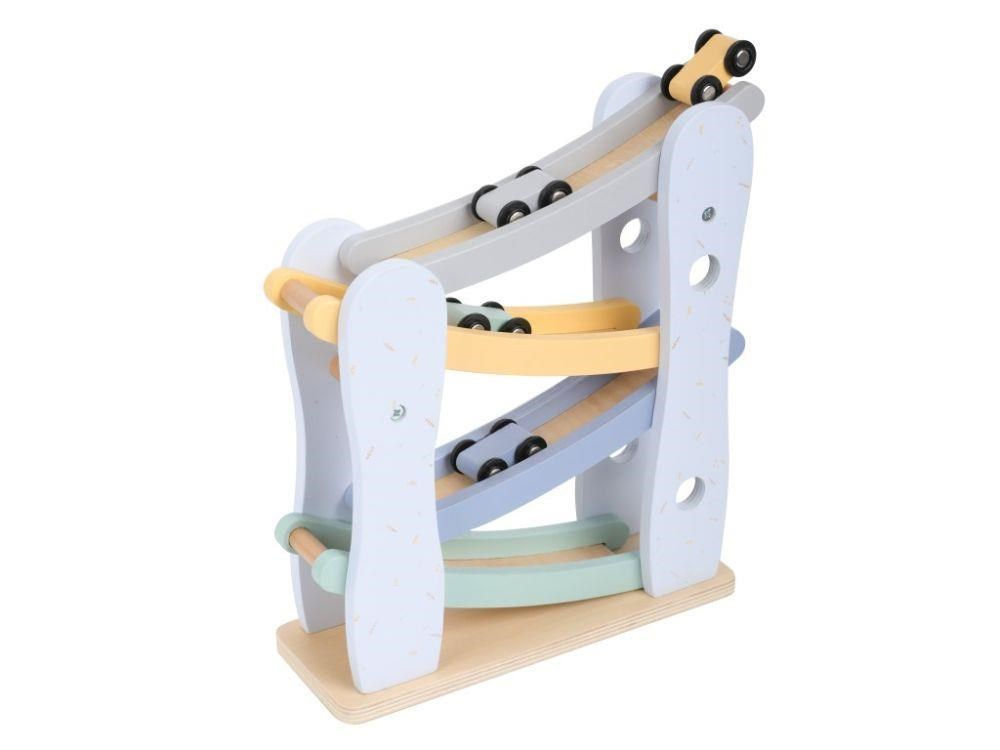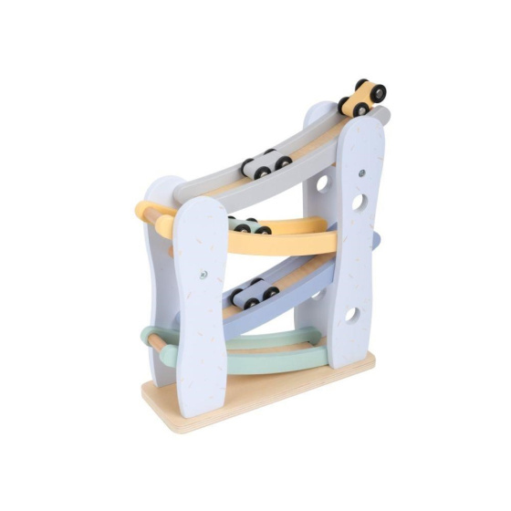 Dřevěná závodní dráha (autodráha) v krásných pastelových barvách, se 4 barevnými autíčky, probudí duši závodníka v každém dítku a nejspíš i v rodičích. Uspořádání závodů se závodními auty přímo v dětském pokoji je zábavnou hrou pro celou rodinu. Rozhodující při této hře je správná koordinace, přesnost, chvíle soustředění, zkrátka správně umístit závodničku na vrchol závodní dráhy..