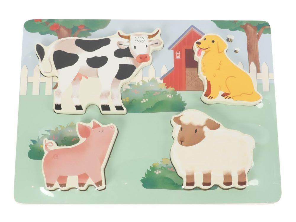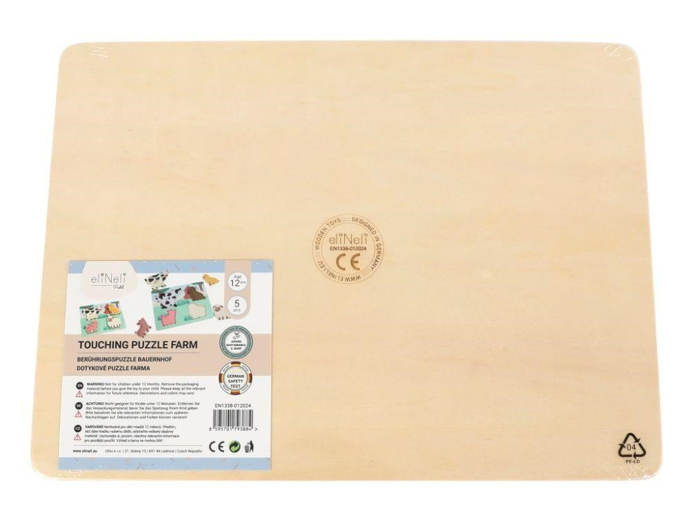 Originální dřevěné vkládací puzzle zavede děti na farmu, seznámí je se zvířátky, která mohou znát ze svého okolí i jejich kožíškem. Zvířátka v jejich skutečné podobě dodávají hře spolu s různými texturami realistický nádech. Děti při hře s puzzle zdokonalují motorické dovednosti, koordinaci očí a rukou, stimulují smysly a učí se poznávat zvířátka z farmy..