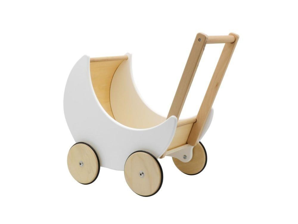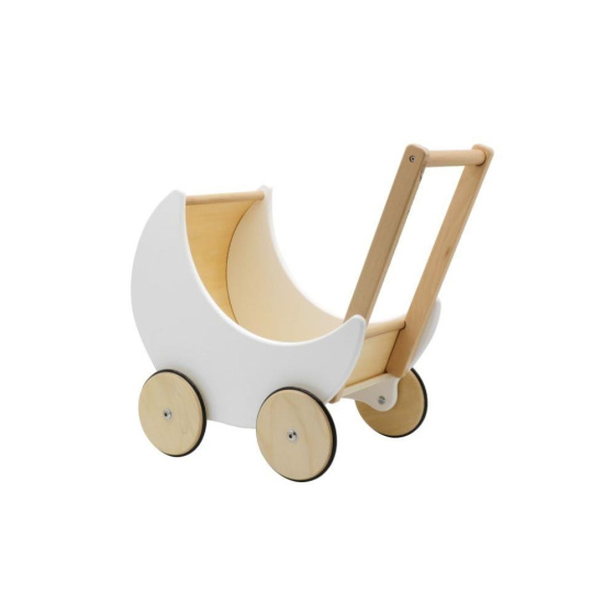 Designový kočárek ve tvaru měsíčku, vyrobený z přírodního dřeva, je jako stvořený pro krátké i dlouhé procházky, uspávání oblíbených panenek nebo plyšáků. Dřevěný kočárek dobře padne do dětské ručky, snadno se řídí a ovládá. Kočárek pro panenky zaparkovaný v dětském království vaší princezny je současně i krásnou dekorací..
