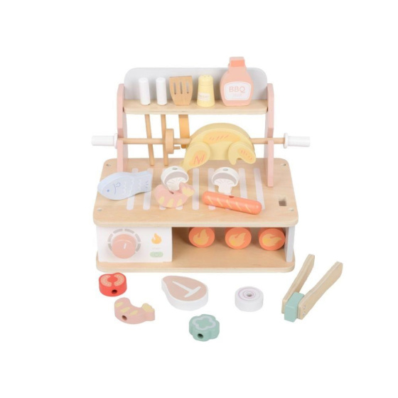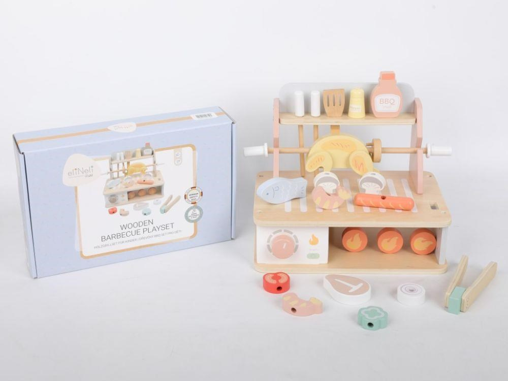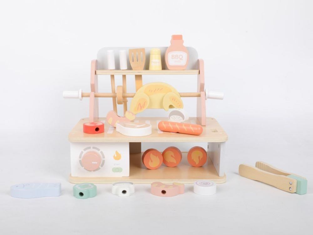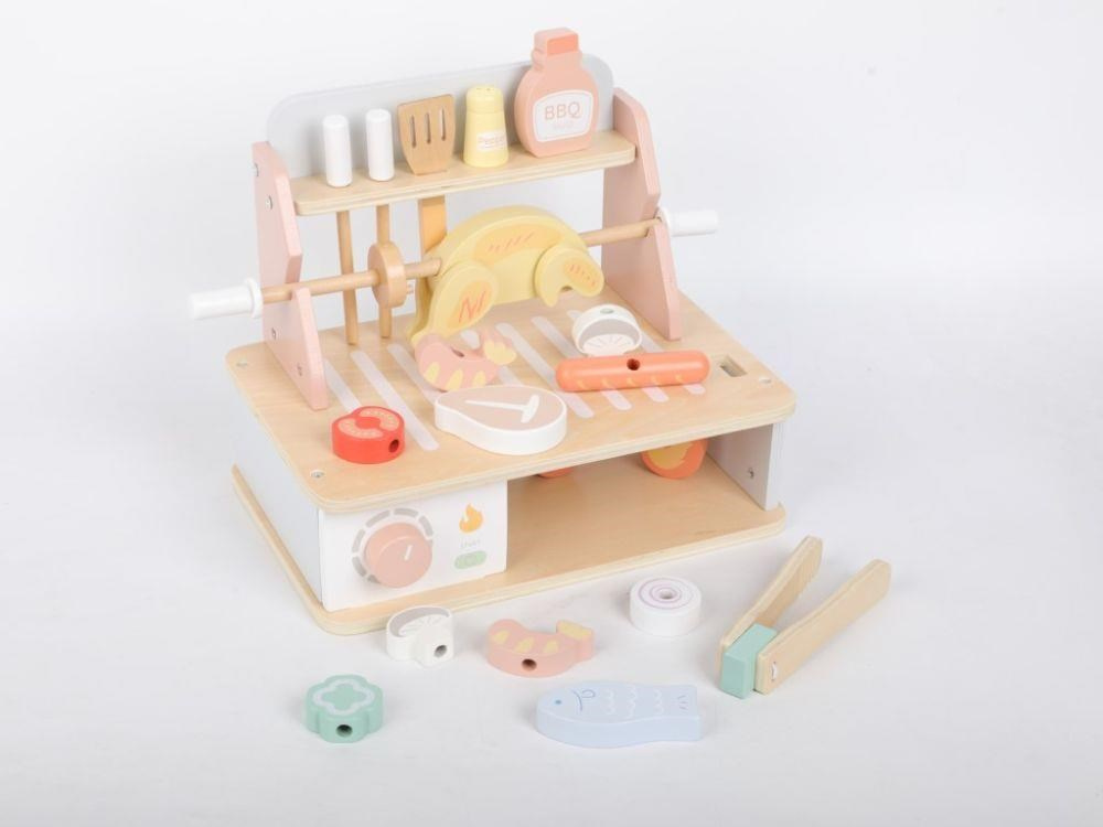 Dřevěný gril s bohatým příslušenstvím umožní dětem vyzkoušet si grilování bezpečným dětským způsobem. Uspořádat Barbecue slavnost bude hračkou a velkou zábavou. Žádná letní grilování se neobejde bez různých druhů masa, zeleniny a omáček, to vše v BBQ sadě najdete, včetně dalších doplňků pro přípravu masa a špízu. S dětskou BBQ sadou můžete grilovat celý rok, kdekoliv a v jakémkoliv počasí..