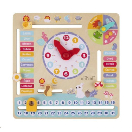 Dřevěný kalendář v češtině je krásnou vzdělávací hračkou i jedinečnou dekorací do pokojíčku holčiček i chlapců. Dětský kalendář v barevné kombinaci přírodního dřeva a krásných barev, s přírodními motivy a zvířátky, provede děti celým kalendářním rokem. Kalendář s lesními zvířátky pomůže dětem s orientací v čase. Pro děti je velice těžké pochopit a naučit se něco, co si nedokáží představit. S dětským kalendářem budou mít děti názorné ukázky, jak plyne den, jaké může být venku počasí, jak se střídají roční období, jak jdou jednotlivé dny a měsíce po sobě. Uprostřed kalendáře děti najdou velké barevné hodiny.