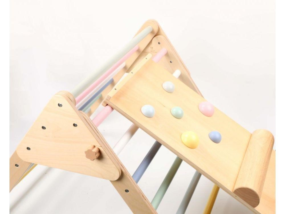 Dřevěný Piklerové trojúhelník set s montessori prknem - pastelový