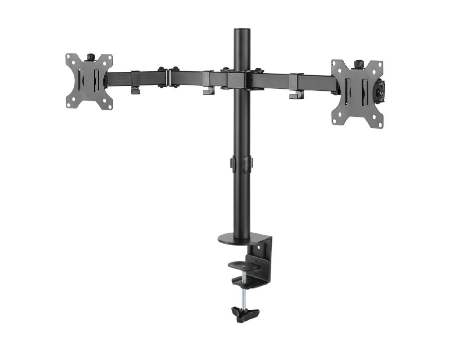 Stolní držák na 2 monitory 15-30", otáčení, naklápění, nastavení vzdálenosti a výšky, VESA 75 / 100, vedení kabeláže, nosnost 16kg.Více