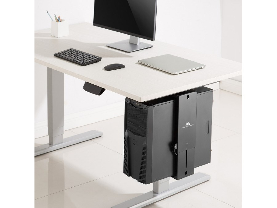 Držák na PC Fiber Mounts M8C85 Držák na PC, uchycení pod stůl, nastavení velikosti dle skříně, otočný, nosnost 10kg Držák MC-885 je určen pro vertikální montáž počítače pod desku stolu. Je to perfektní řešení pro optimální využití pracovního prostoru. Použití držáku MC-885 zvyšuje množství volného místa na stole a současně udržuje počítač nad podlahou, daleko od nohou, prachu a statické elektřiny. A co je nejdůležitější, počítač máte stále na dosah ruky. Stolní držák na PC, přizpůsobí se velikosti skříně, otočný, nosnost 10kg, TOP kvalita - Fiber Mounts M8C85 Technické údaje: nosnost 10kg nastavení velikosti dle PC skříně výška 373-583mm šířka 88-203mm otáčení do stran +/- 180° kvalitní ocelová konstrukce snadná instalace a fixace PC skříně barva černá záruka 5 let Díky nastavení výšky a šířky lze rukojeť přizpůsobit většině standardních počítačových skříní. Design rukojeti navíc umožňuje otočit připojený počítač o 180 °, což usnadňuje přístup ke konektorům a kabelům na zadní straně krytu..