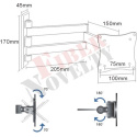 Hliníkový držák s možností náklonu až +/- 70°, na monitory a Tv 15-32", otočný +/- 90°, nastavení vzdálenosti od zdi 50-370mm, VESA 75x75 a 100x100, nosnost 15kg, materiál hliník, záruka 5 let.Více