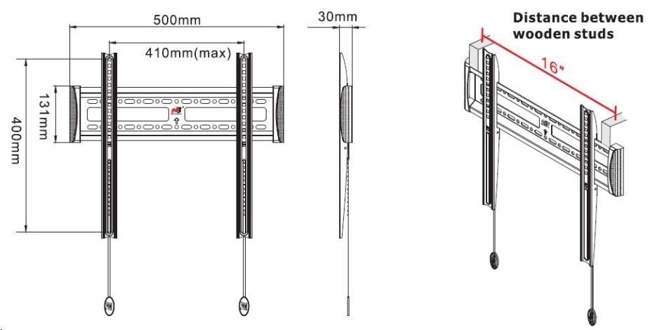Profesionální fixní držák pro zavěšení LCD LED i plazmových televizorů s úhlopříčkou 32-50" , vzdálenost od zdi 30mm.Více