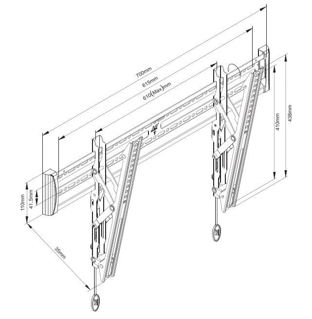 Sklopný držák na LCD LED Tv 43-80", naklápění 0° až -12°, VESA 75x75 až 600x400, vzdálenost od zdi 35mm, systém click-connect, nosnost 36,4kg, prémiová kvalita.Více