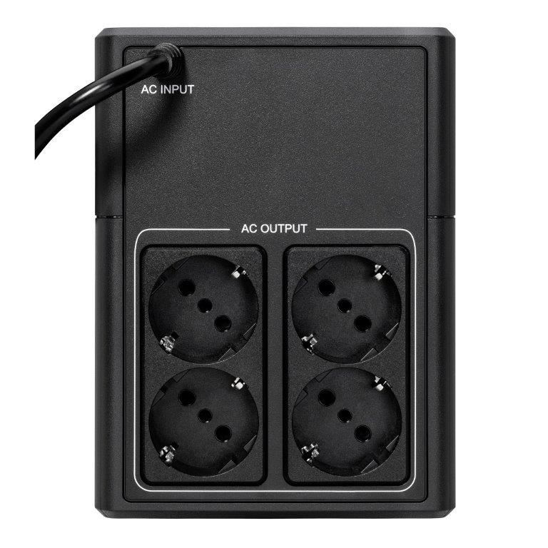 | Speciální funkce | Automatická regulace napětí (AVR) Úspora místa díky kompaktní věžové konstrukci Port USB kompatibilní s HID pro automatickou integraci s hlavními operačními systémy (Windows/Mac OS/Linux) Obsahuje čtyři zásuvky Schuko (DIN) |