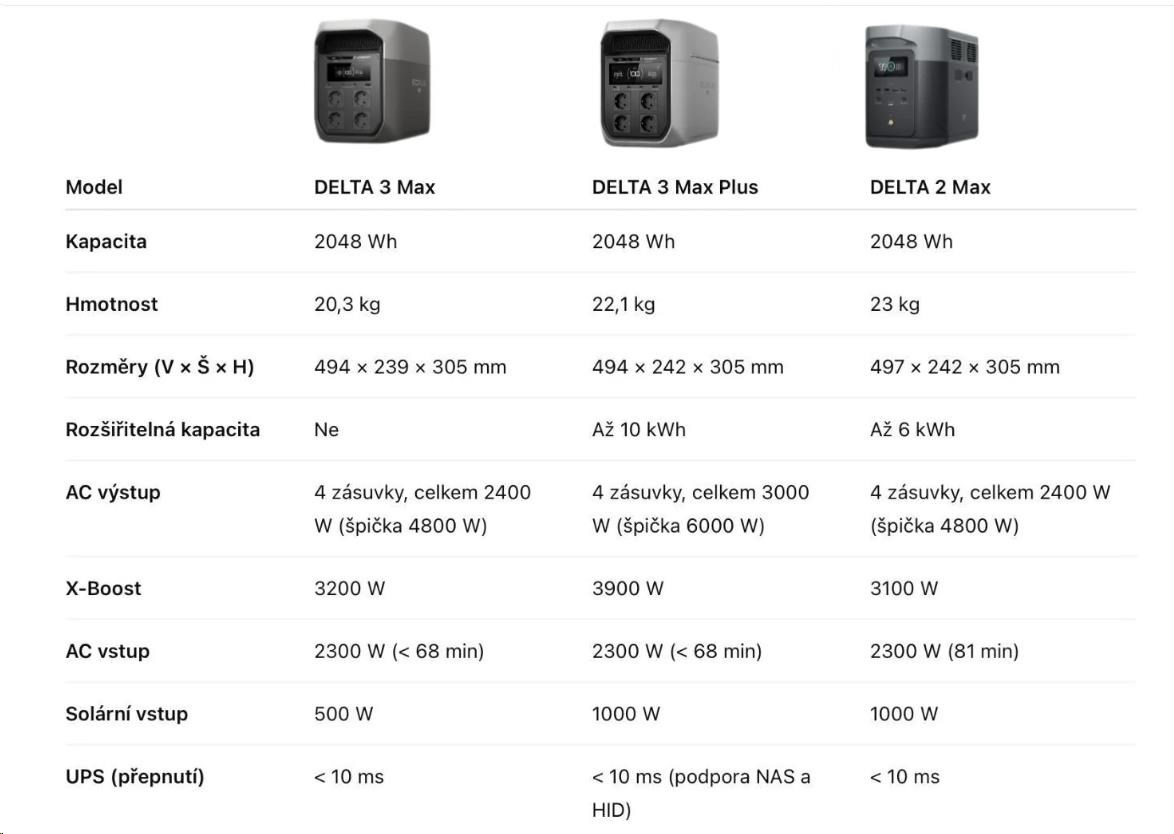 1x EcoFlow DELTA 3 Max | 1x AC nabíjecí kabel | 1x manuál a záruční list