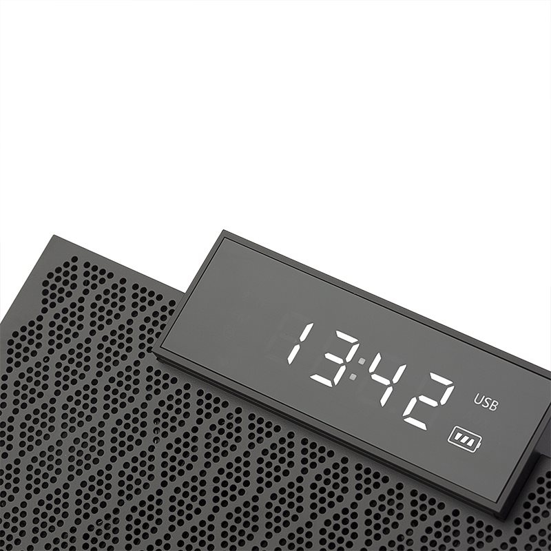 Reproduktor je vybaven velkým, dobře čitelným displejem, který vám poskytne některé z nejdůležitějších informací. Nyní můžete zkontrolovat čas nebo úroveň baterie pouhým pohledem! A co víc, díky speciálním senzorům se jas obrazovky neustále přizpůsobuje prostředí. Displej můžete také úplně vypnout stisknutím tlačítka – nemusíte se bát příliš jasného světla, které vás v noci udrží vzhůru!