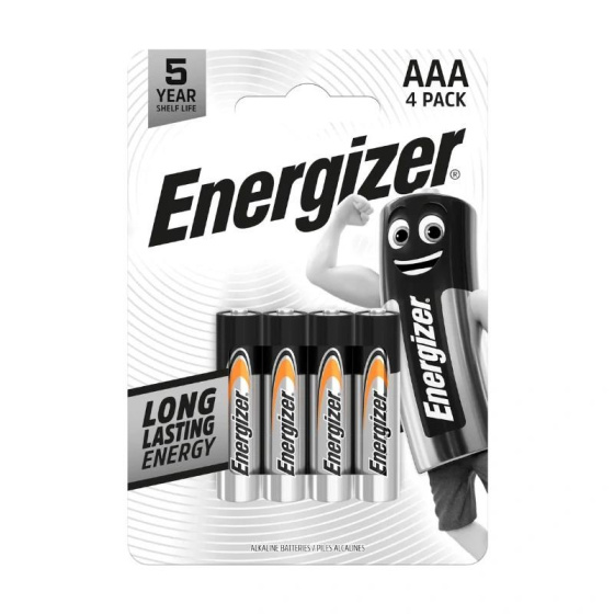 Jednorázová baterie mikrotužková (AAA), alkalický článek, napětí až 1,5 V, 4 ks v balení.