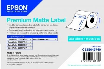 Epson label roll, normal paper, premium matt coated, fits for: Epson ColorWorks CW-C6000, Epson ColorWorks CW-C6500, Epson ColorWorks C7500, dimensions (WxH): 105x210mm, 282 labels/roll.