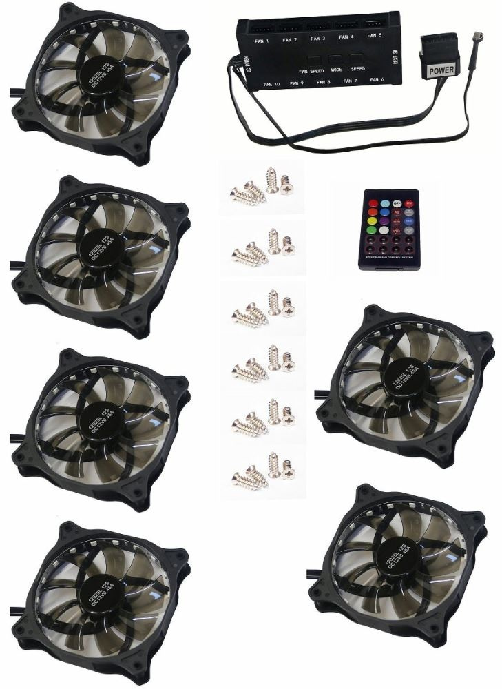 Popis EUROCASE ventilátor RGB 120mm (FullControl spot Led), set 6ks + controller