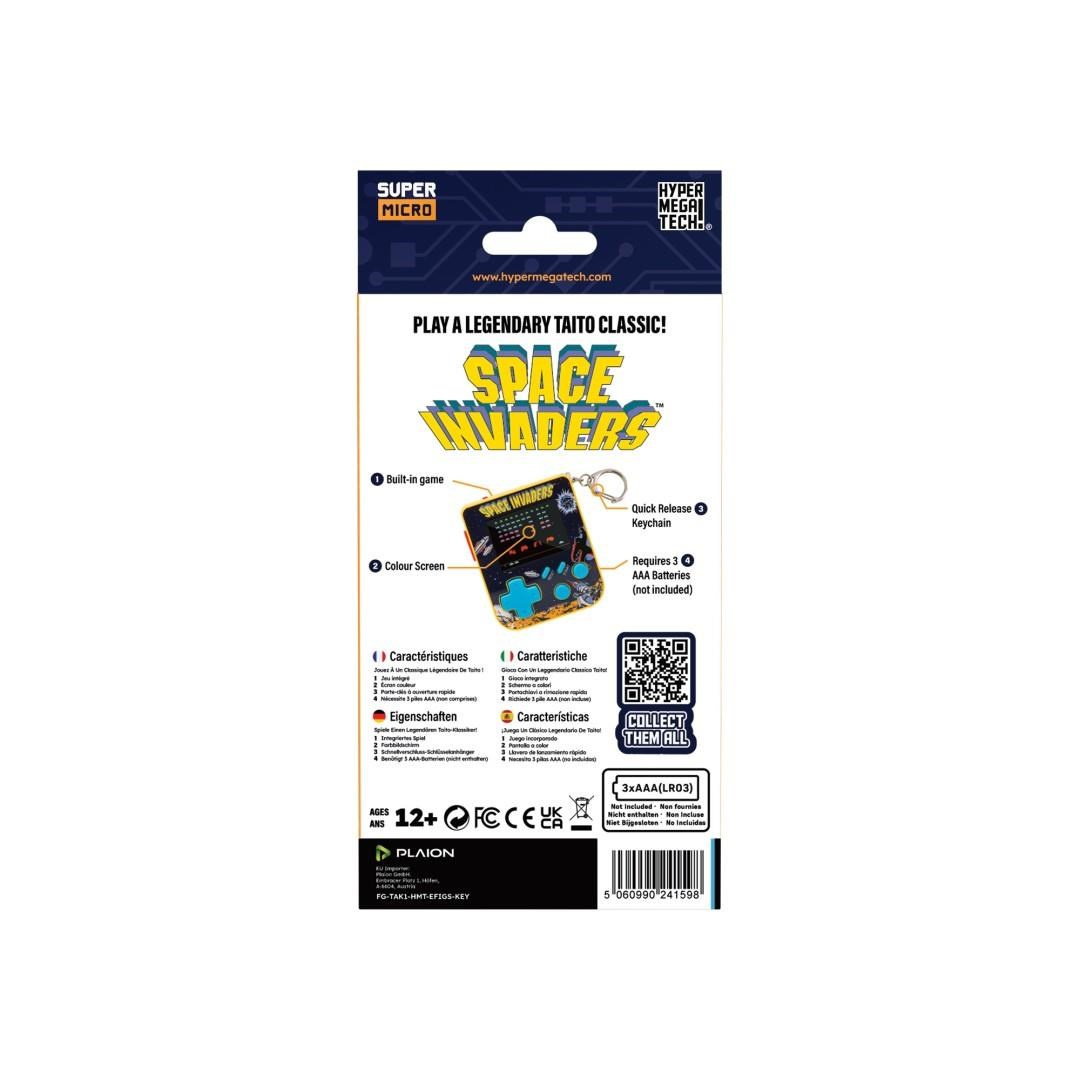 Retro hraní v mikro rozměrech díky klíčence Super Micro Space Invaders Keychain Gamer od HyperMegaTech! Dostatečně malé, abyste si ji mohli připnout ke klíčům a vzít kamkoli, ale i dostatečně velké, abyste si mohli zahrát. Obsahuje klasickou, oficiálně licencovanou hru Space Invaders! Dvoupalcová obrazovka RGB umožňuje maximální hratelnost a ovládání hlasitosti na tu správnou míru z ní dělá víc než jen cetku. Vyžaduje 3 baterie AAA (nejsou součástí balení).