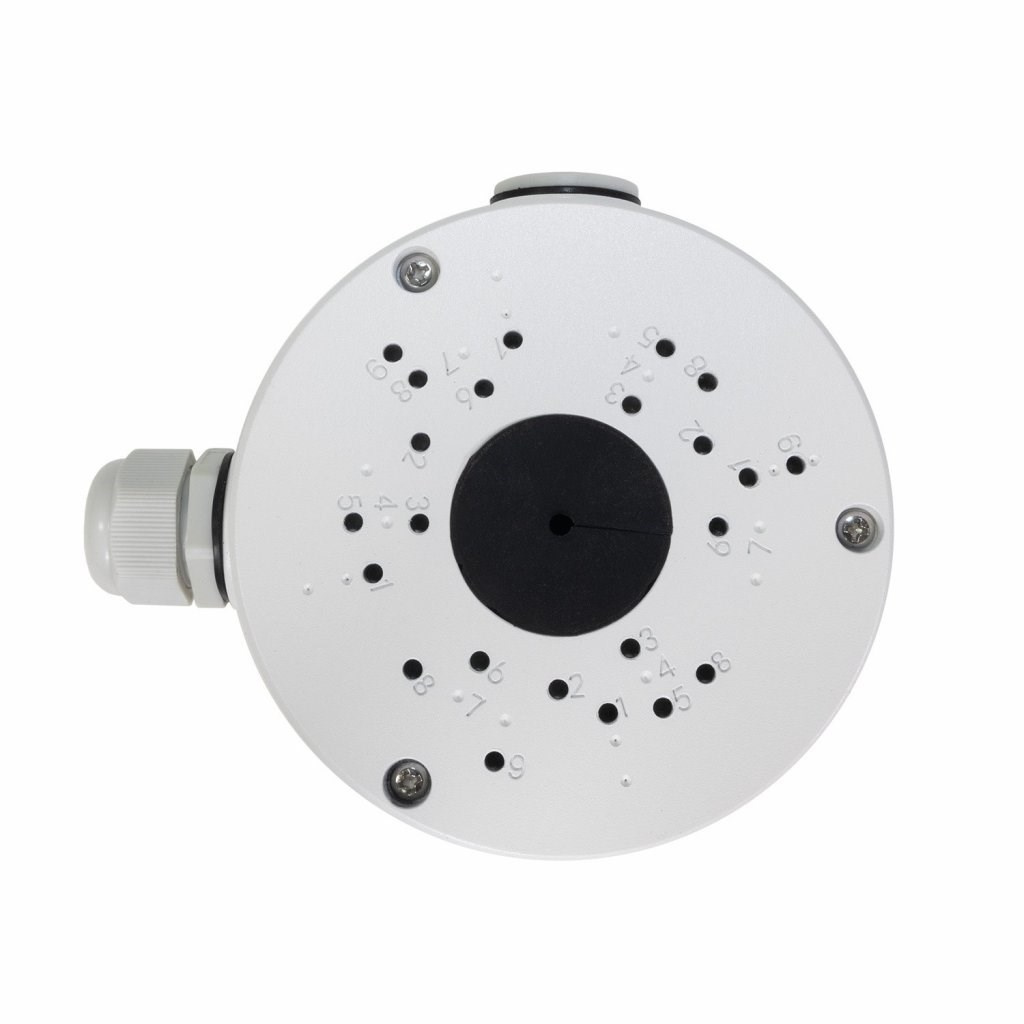 Instalační box pro kamery kamerového systému EVOLVEO Detective, vyrobený z hliníkové slitiny opatřený sadou těsnění a příslušenství pro montáž kamer. Umožňuje schovat konektory pro připojení kamery a ochránit je před povětrnostními vlivy. Na boxu jsou závitové otvory označené čísly pro uchycení všech druhů kamer, použitých s kamerovými systémy EVOLVEO Detective. Krabici lze využít i pro kamery jiných výrobců, vždy je nutné ověřit rozteč a uspořádání otvorů viz tabulka níže.