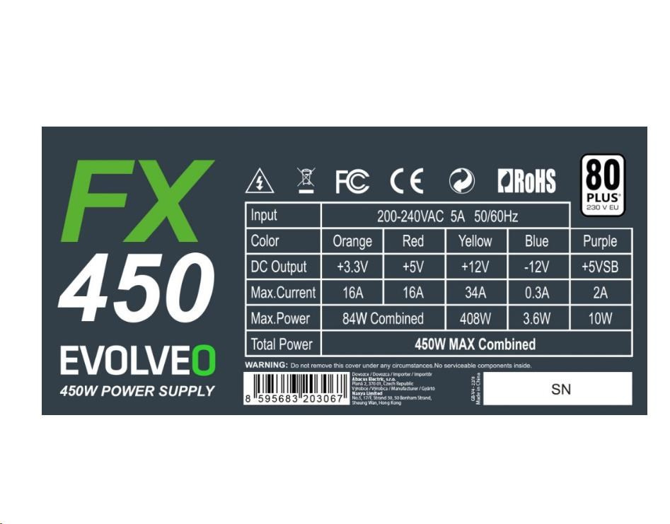 EVOLVEO FX 450, zdroj 450W ATX, 14cm, tichý, 80+, bulk