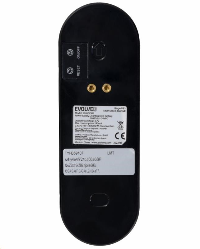 Popis EVOLVEO Ringo DB2 - bezdrátový chytrý videozvonek + zvonek do zásuvky