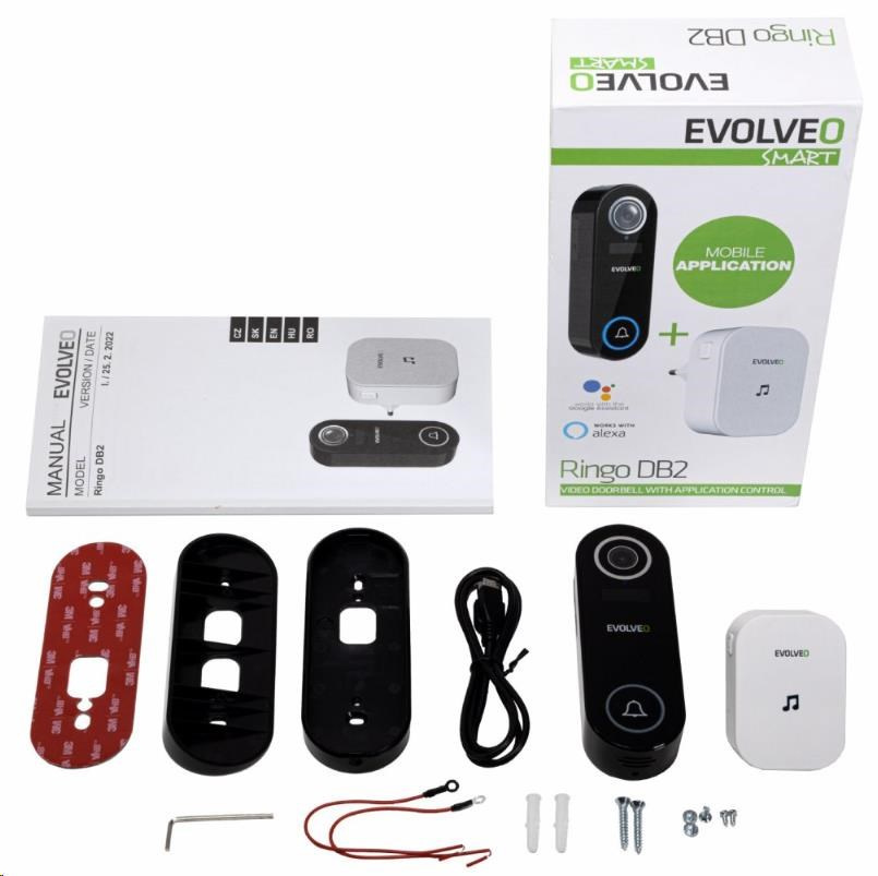 Obsah balení EVOLVEO Ringo DB2, chytrý videozvonek