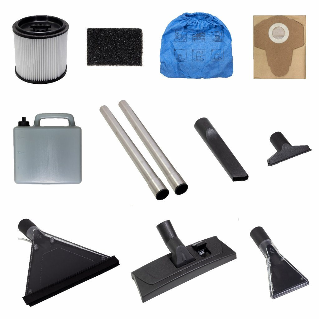 Víceúčelový vysavač Salente Combo 4v1 využijete prakticky všude. Pouhým přidáním dodaného příslušenství se z vysavače na suché a mokré sání stane kvalitní tepovač pro hloubkové mokré čištění koberců, textilií nebo čalouněného nábytku. Změnou filtračního systému se promění na pomocníka v dílně nebo na stavbě pro vysávání prachu, pilin nebo suti nebo jako fukar na listí na zahradě.