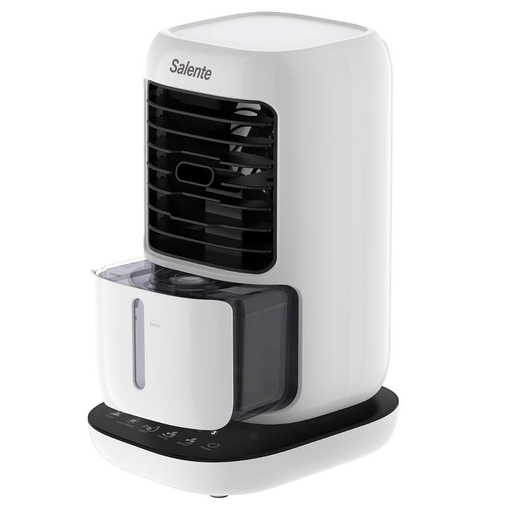Multifunkční zařízení Salente IceTop plní funkci malého stolního ochlazovače vzduchu, který vám v horkých letních dnech nebo teplých prostorách bez možnosti klimatizace zpříjemní práci i soukromí. Současně plní funkci zvlhčovače a nedochází tak při jeho provozu k vysušování vzduchu jako je tomu u standardních klimatizací. Při provozu bez naplněné vodní nádržky plní funkci klasického stolního letního ventilátoru. Na jedno naplnění vodní nádržky vydrží v provozu 6 hodin.
