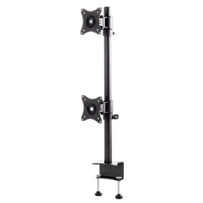Profesionální stolní držák na 2 monitory 15-30", VESA 75x75 a 100x100, otočný, sklopný, výškově polohovatelný, 2 typy stolního uchycení, barva černá, nosnost 20kg.
